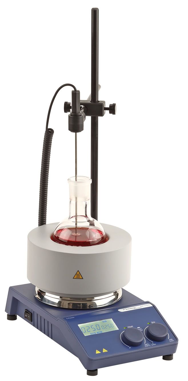 You have the choice between digital or analogue devices. Both variants are available with or without heating function. Most of the stirrers with heating function have an integrated control function.